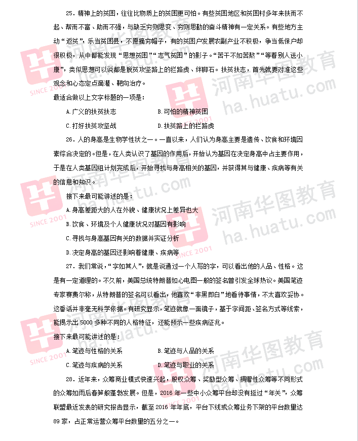 2018河南选调生考试题(7)